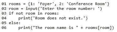 You create the following program to locate a conference room and display the room name. Line numbers are included for
