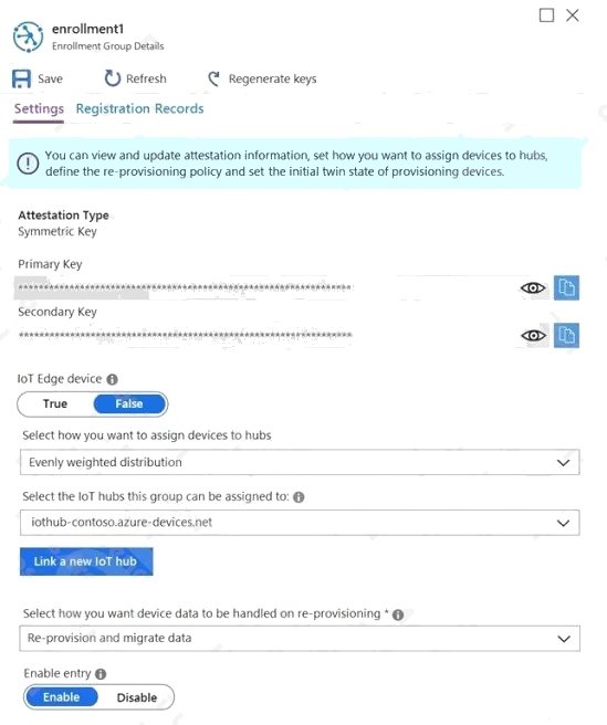 From the Device Provisioning Service, you create an enrollment as shown in the exhibit.