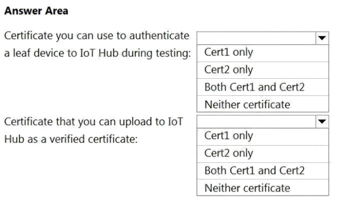 You have an Azure IoT hub that has a hostname of contoso-hub.azure-devices.net and an MCU-based IoT device named