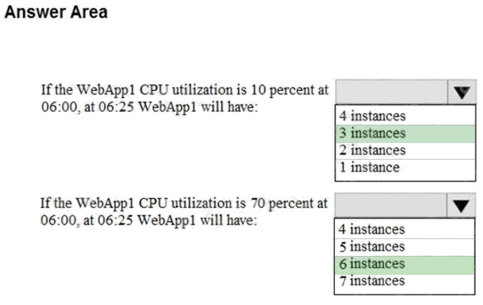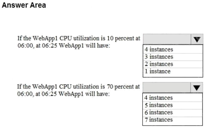 You need to identify how many instances are running on WebApp1 based on the percentage of the CPU utilization.