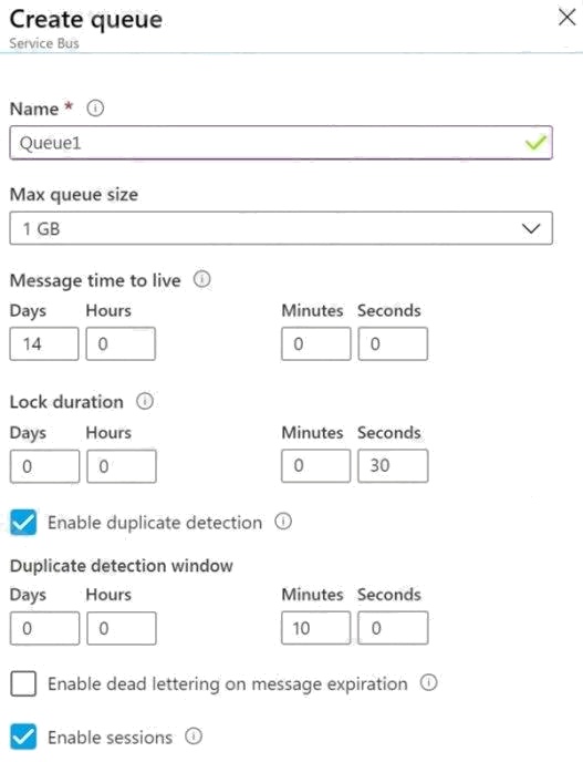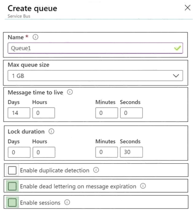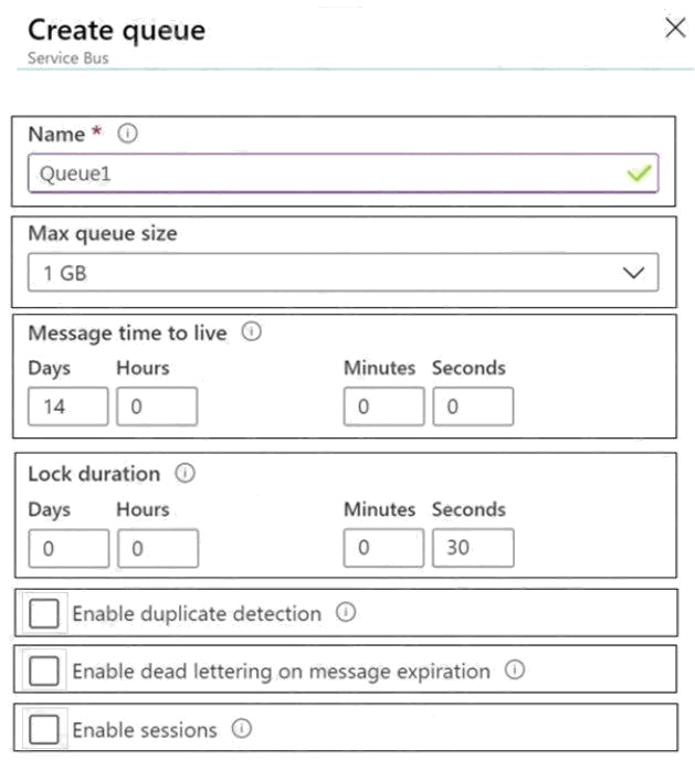 You create a Service Bus queue named Queue1 as shown in the exhibit. (Click the Exhibit tab.)