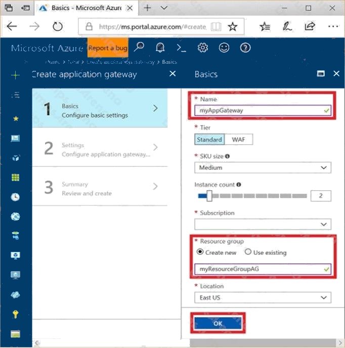 References: https://docs.microsoft.com/en-us/azure/application-gateway/application-gateway-create-gateway-portal