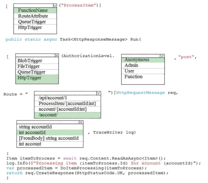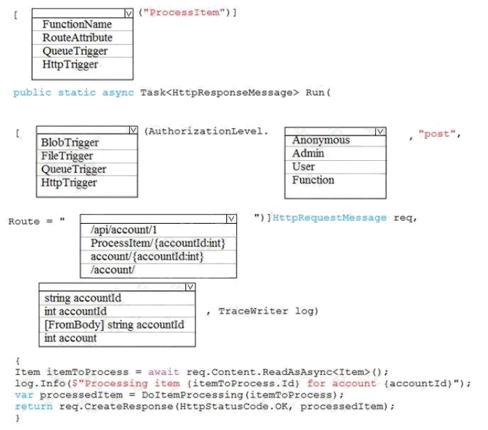 You are developing an Azure Function that will be triggered using a webhook from an external application. The Azure