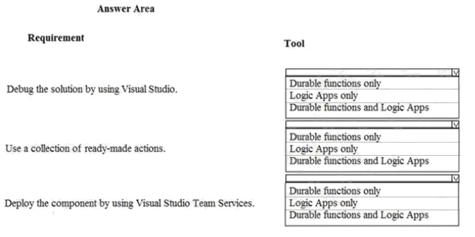 What should you implement to meet each requirement? To answer, select the appropriate options in the answer area.