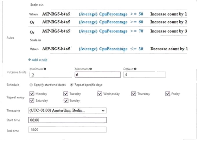 You have an Azure web app named App1 that contains the following autoscale conditions: