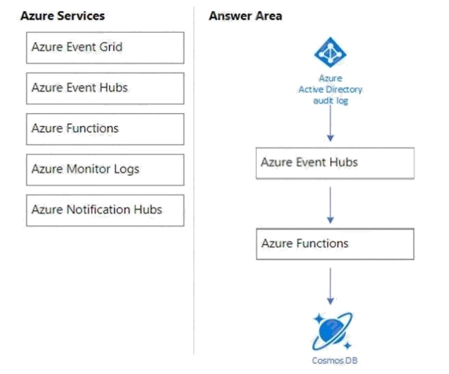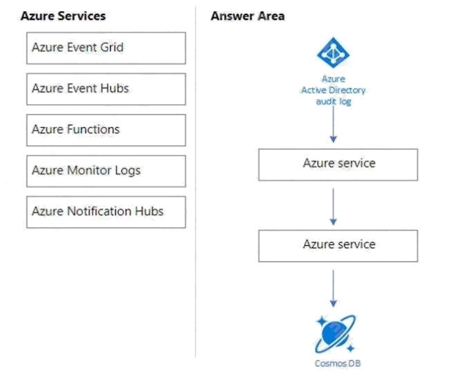Which Azure services should you include in the design? To answer, drag the appropriate services to the correct targets.