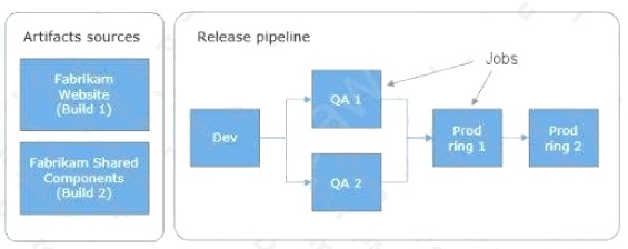 succeeds in both the QA stages, the release is deployed to Prod ring 1 and then to Prod ring 2. Each production ring