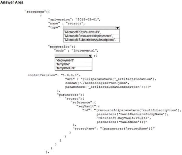 References: https://docs.microsoft.com/en-us/azure/azure-resource-manager/resource-manager-keyvault-parameter