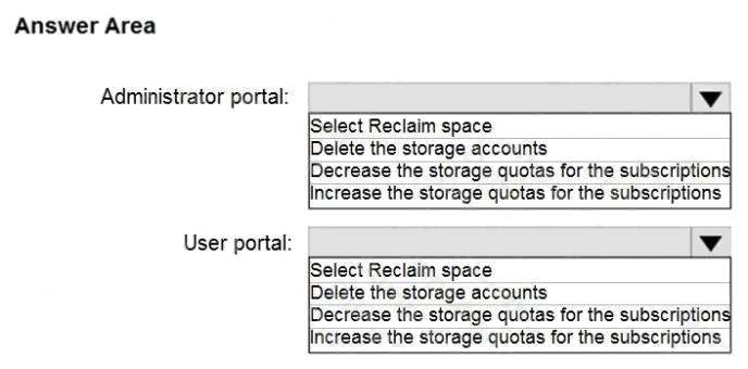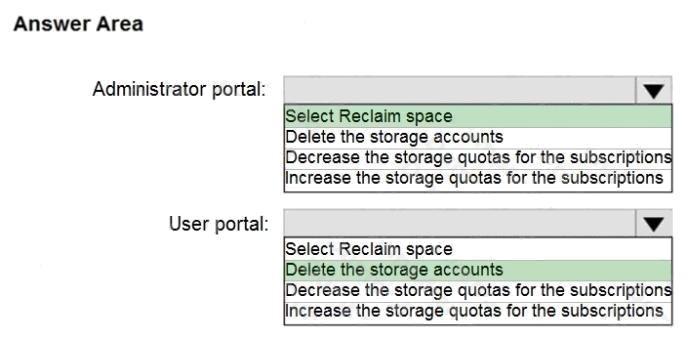 You need to delete the unused storage accounts. The solution must increase the amount of available disk space in the