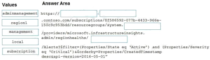 Which URI query should you use? To answer, drag the appropriate values to the correct locations. Each value may be used