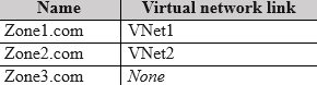 The subscription contains the Azure Private DNS zones shown in the following table.