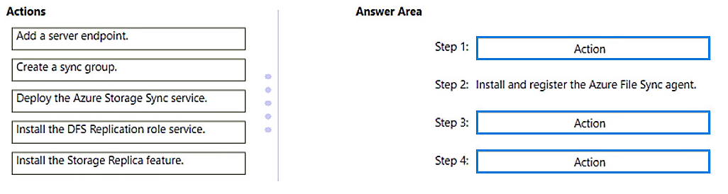 Which actions should you perform in sequence? To answer, drag the appropriate actions to the correct order. Each action may be used once, more than once, or not at all. You may need to drag the split bar between panes or scroll to view content.
