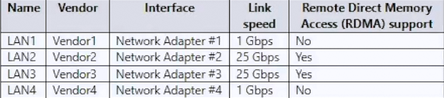 You have a server that runs Windows Server 2022 and has the network adapters shown in the following table.