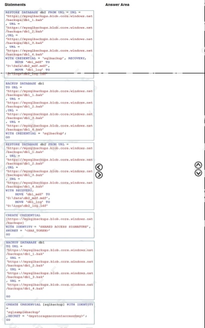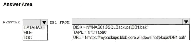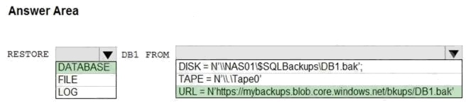TO URL = 'https://myacc.blob.core.windows.net/testcontainer/tpcc2501.bak' WITH COPY_ONLY Box 2: WITH COPY_ONLY