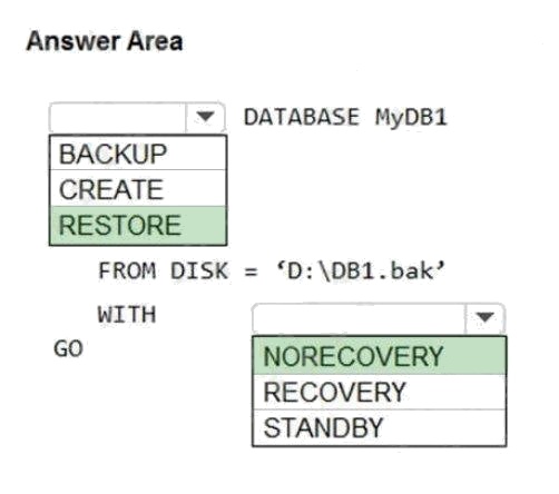 Which Transact-SQL command should you run? To answer, select the appropriate options in the answer area.