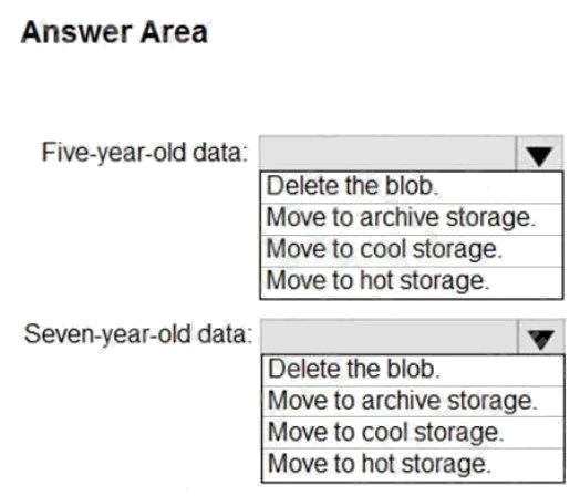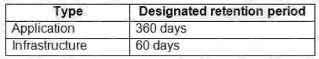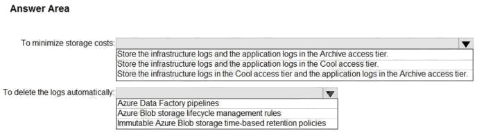 Box 1: Store the infrastructure logs in the Cool access tier the application logs in the Archive access tier