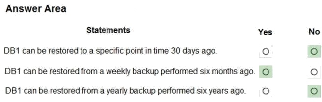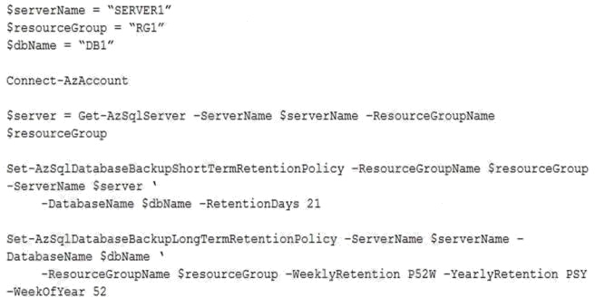 You have SQL Server on an Azure virtual machine that contains a database named DB1.