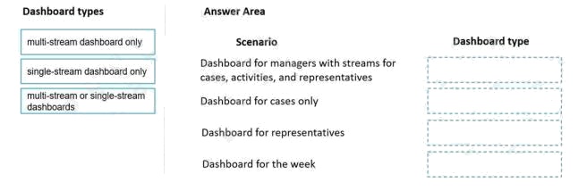 Which dashboard types should you use? To answer, drag the appropriate dashboard types to the correct scenario. Each