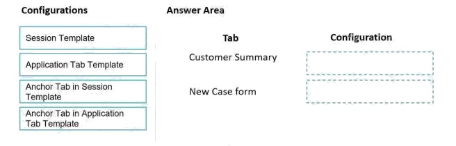 Which configuration should you use for each tab? To answer, drag the appropriate types of account information to the