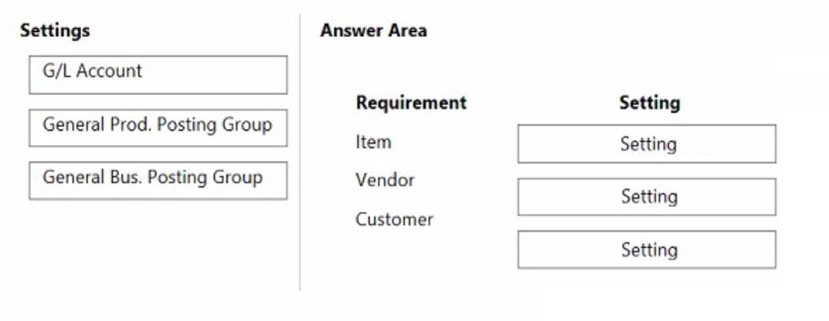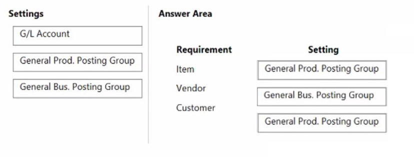 DRAG DROP A company uses Dynamics 365 Business Central.