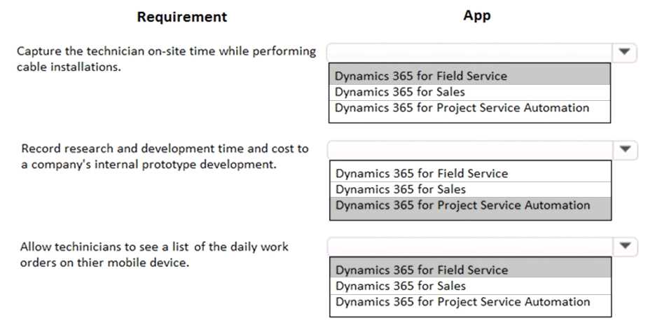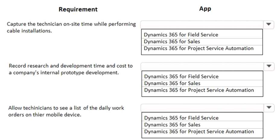 A cable installation company is implementing Dynamics 365 for Customer Engagement.