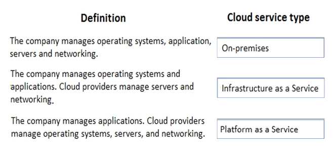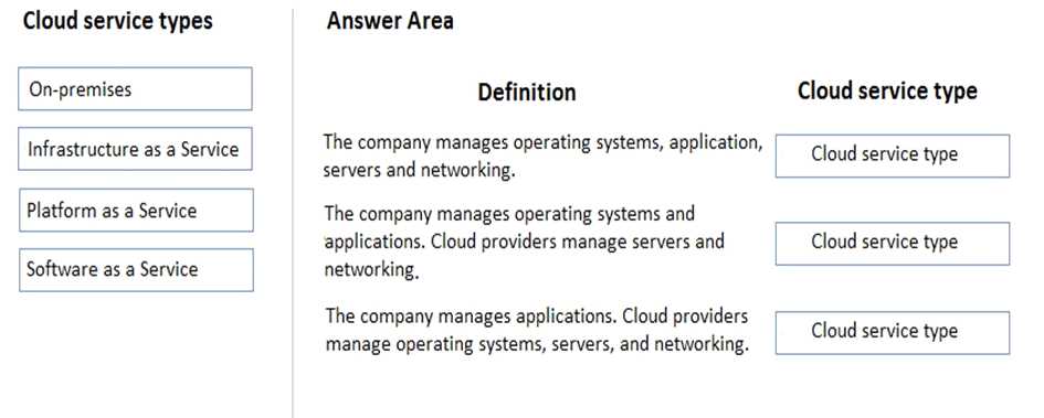 Instructions: To answer, drag the appropriate cloud service type from the column on the left to its