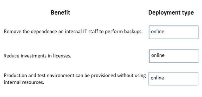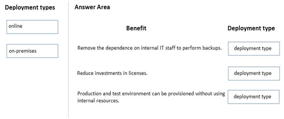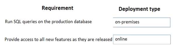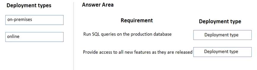 What should you recommend? To answer, drag the appropriate deployment types to the correct