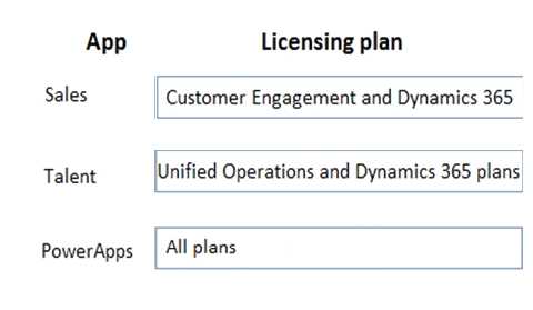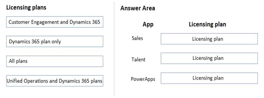 Instructions: To answer, drag the appropriate plan from the column on the left to its app on the right.