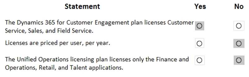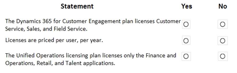 For each of the following statements, select Yes if the statement is true. Otherwise, select No.