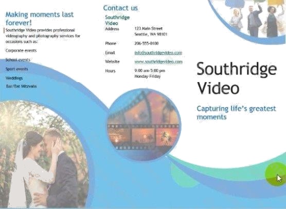 You are preparing a brochure for Southridge Video. You plan to distribute the brochure electronically and in print. Apply the centered style set to the document.