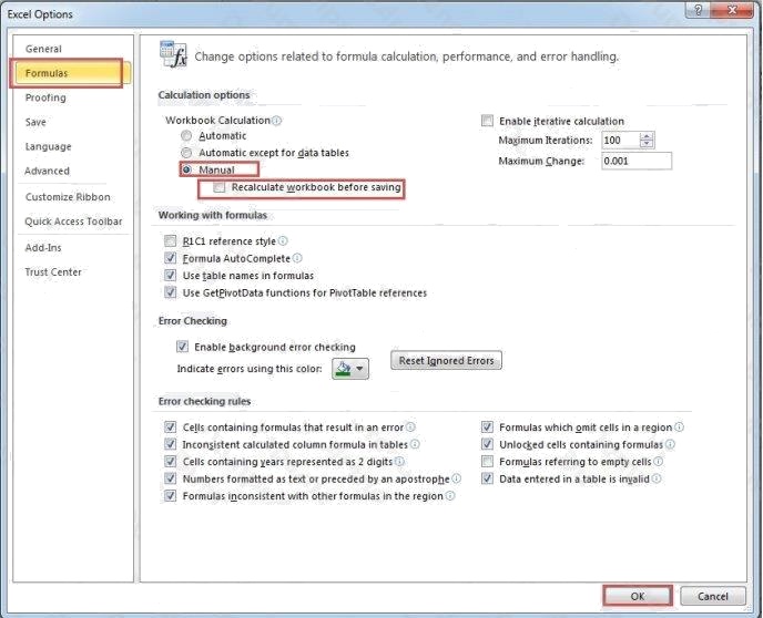 4. And then in the Calculation Options, check the option Manual.