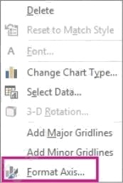 3. Right-click the horizontal axis of the chart, click Format Axis, and then click Axis Options.