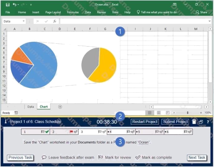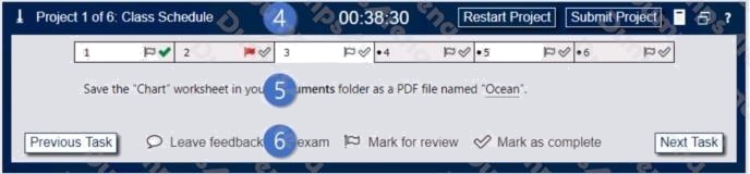 4. The Information bar at the top of the exam panel displays the current project and total number of projects, the remaining