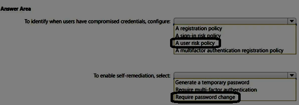 What information must be configured for each user before the user can perform a self-service password reset? To answer, select the appropriate options in the answer area.