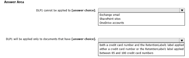 HOTSPOT You configure a data loss prevention (DLP) policy named DLP1 with a rule configured as shown in the following exhibit.