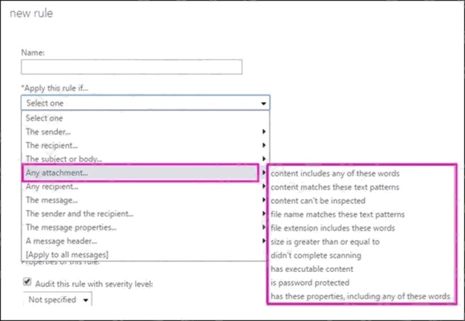 permissions to do this procedure. After you start to create a new rule, you can see the full list of attachment-related