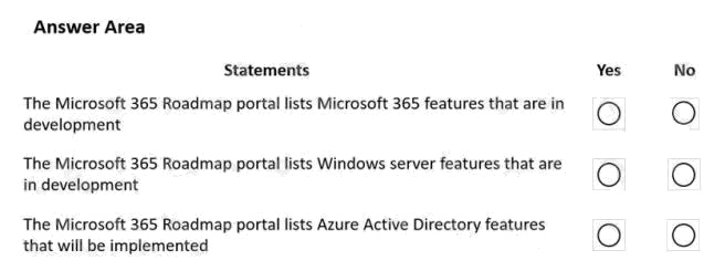 For each of the following statements, select Yes if the statement is true. Otherwise, select No.