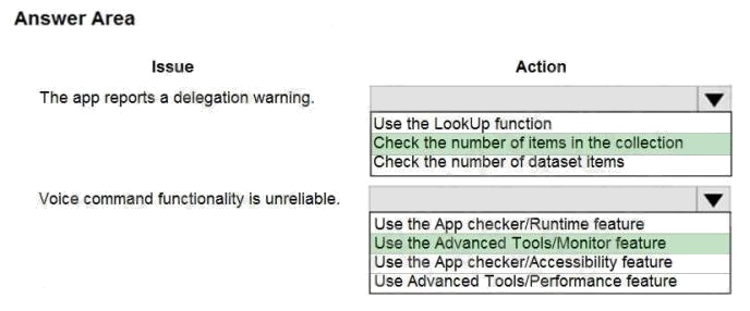 How should you troubleshoot the issues? To answer, select the appropriate options in the answer area.