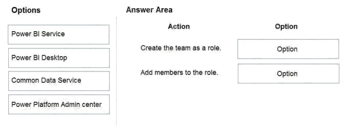 To answer, drag the appropriate options to the correct action. Each option may be used once, more than once, or not at all.