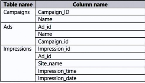Present ad impression counts for the day, campaign, and site_name. The analytics for the last year are required.