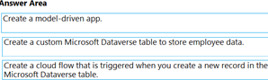 DRAG DROP A company hires you to develop a solution that helps the company manage new hires. Users will enter information about the new employee into an app and the app will save the information to a database.