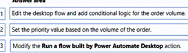 Each day the company receives an email that contains an attachment. The attachment lists orders from the companys rail transportation partners. You must create an automation solution that reads the contents of the email and writes records to the ERP system. The solution must pass credential from a cloud flow to a desktop flow.