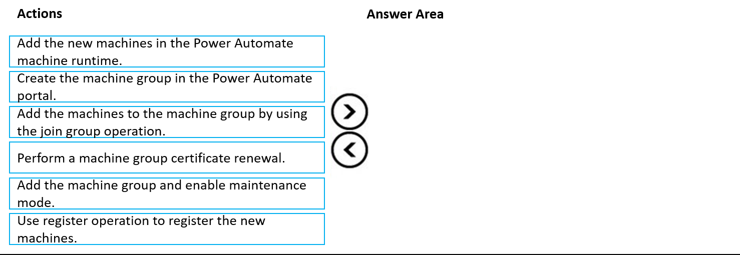 Which three actions should you perform in sequence? To answer, move the appropriate actions from the list of actions to the answer area and arrange them in the correct order.