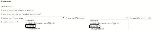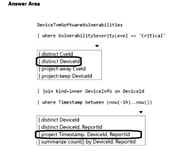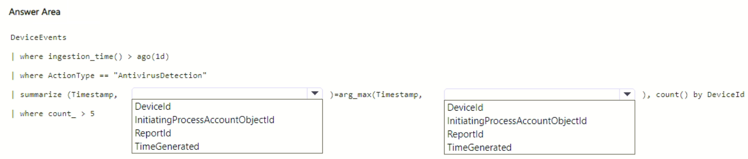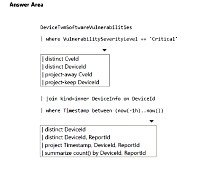 How should you complete the KQL query? To answer, select the appropriate options in the answer area.