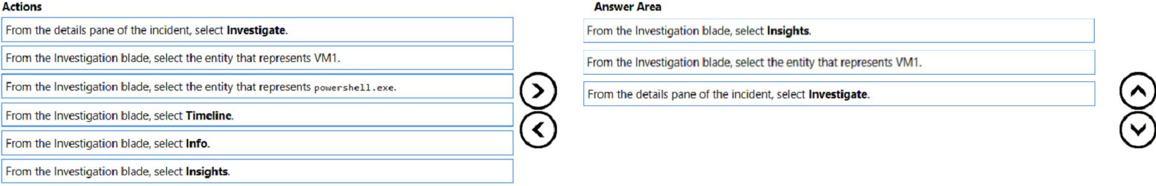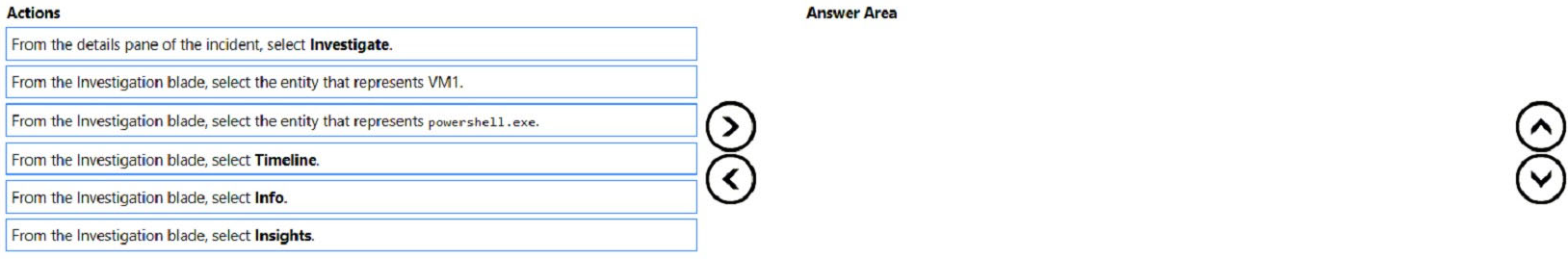 You need to investigate the incident, identify which event triggered the alert, and identify whether the following actions occurred on VM1 after the alert: