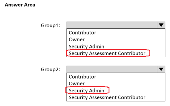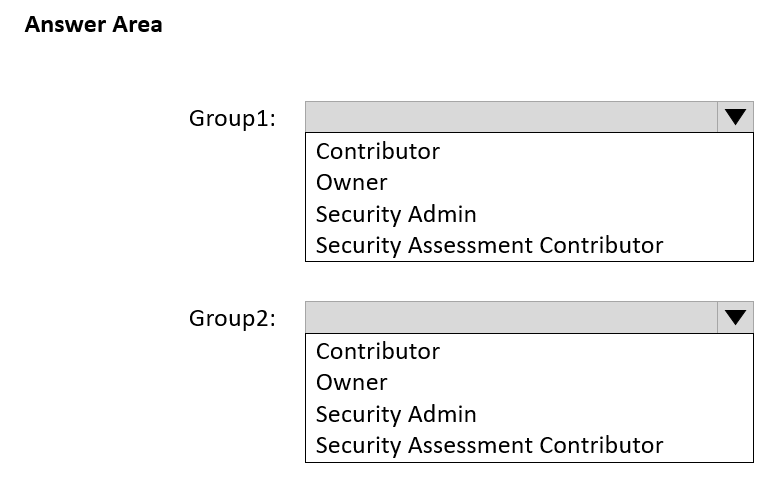 You need to assign role-based access control (RBAC) roles to Group1 and Group2 to meet the Microsoft Defender for Cloud requirements and the business requirements.