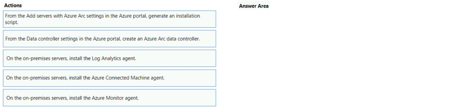 Which three actions should you perform in sequence? To answer, move the appropriate actions from the list of actions to the answer area and arrange them in the correct order.