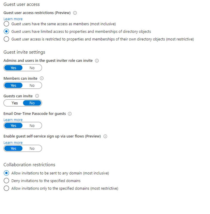 You have a Microsoft 365 tenant that uses the domain named fabrikam.com. The Guest invite settings for Azure Active Directory (Azure AD) are configured as shown in the exhibit. (Click the Exhibit tab.)