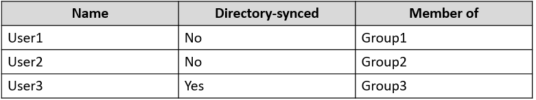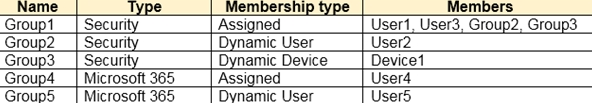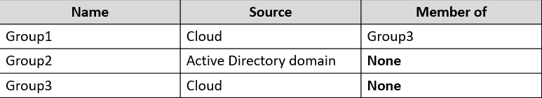 You have an Azure Active Directory (Azure AD) tenant that contains the following objects: