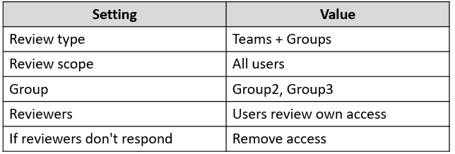 The access review applies to Group3, but not to Group1. The access review is setup to remove access if reviewers don't respond.